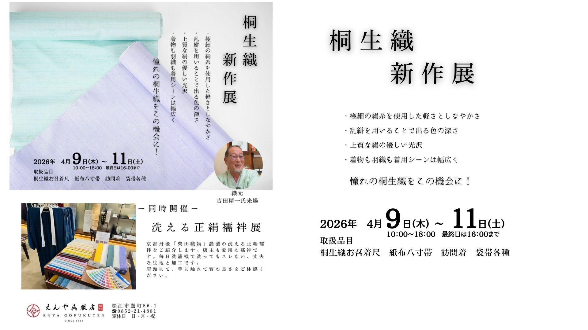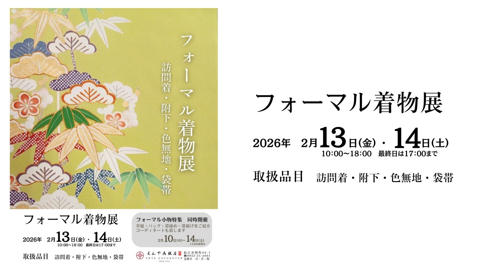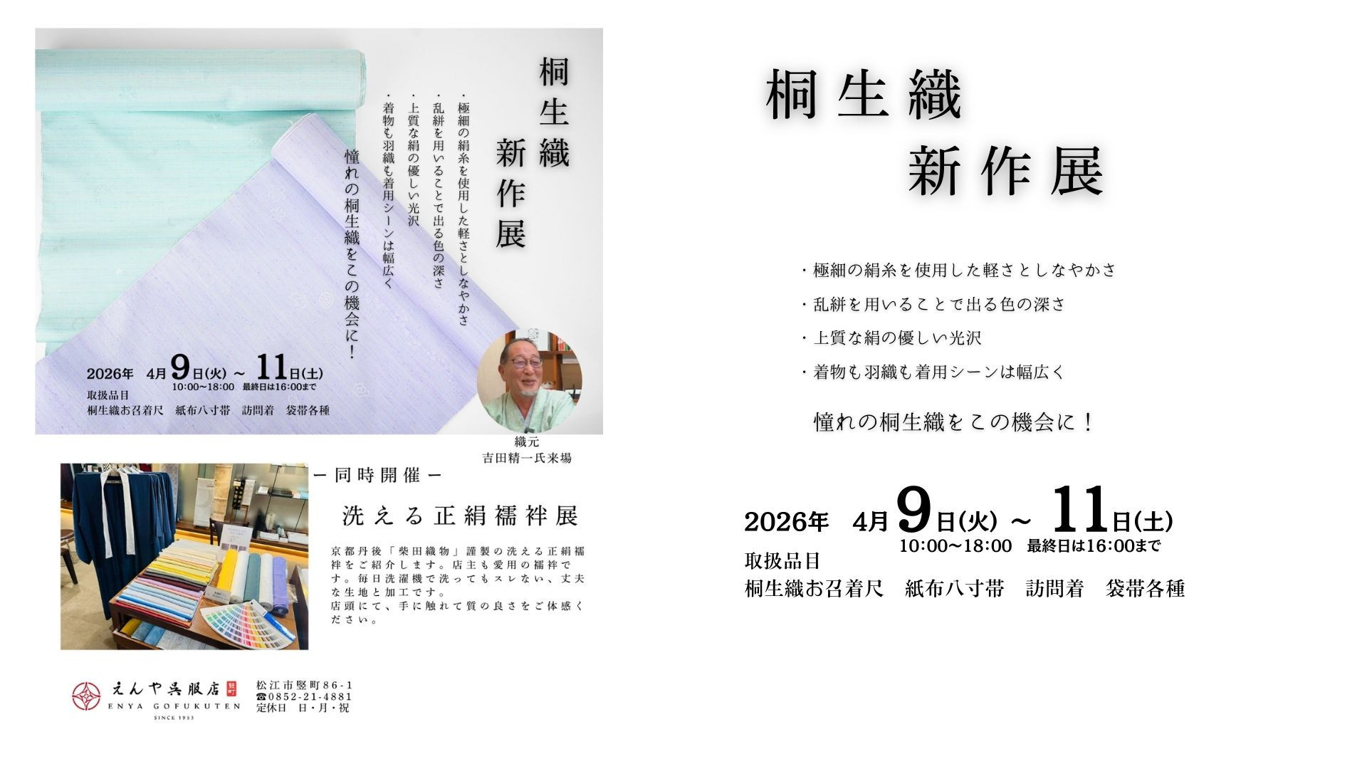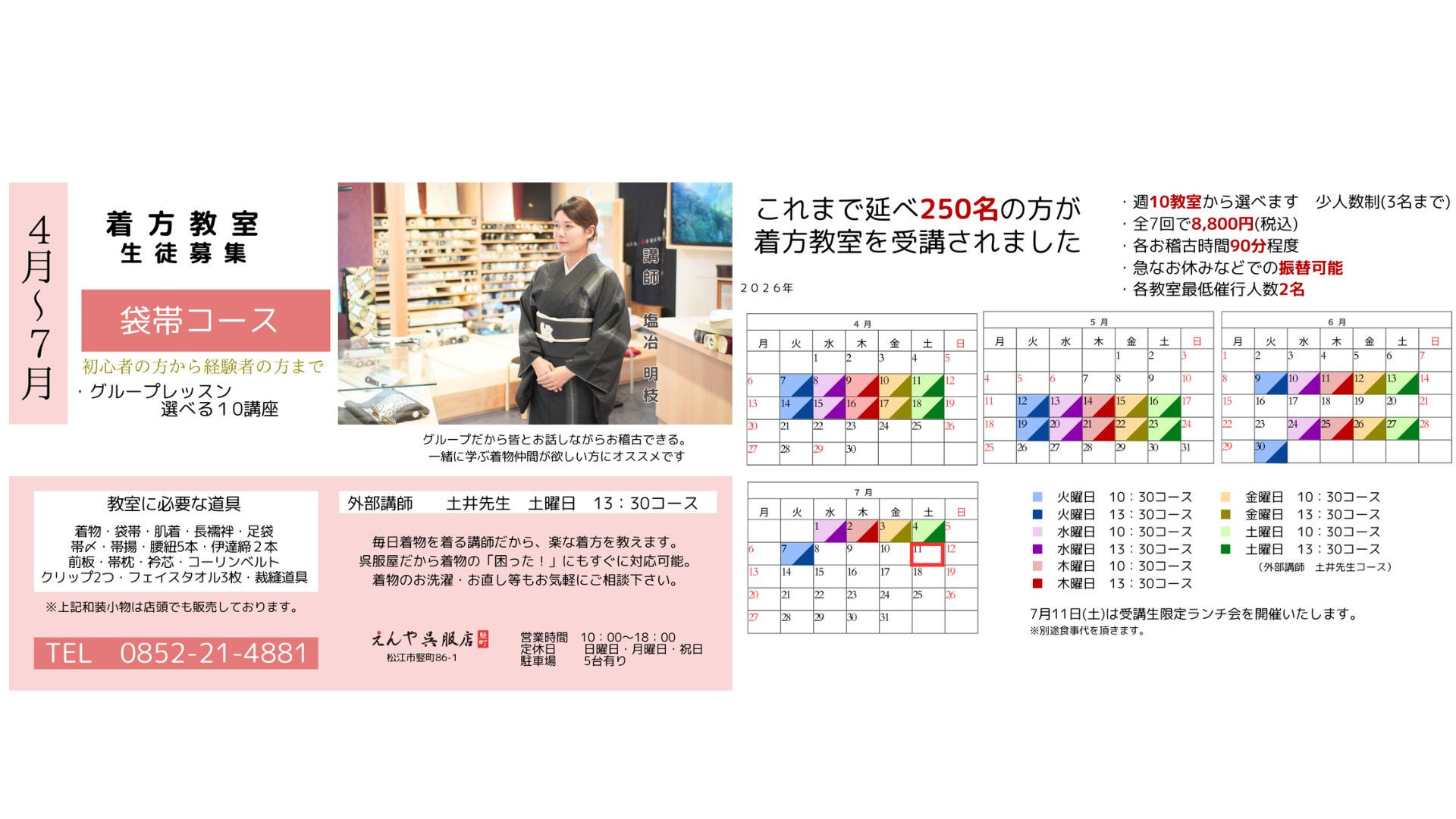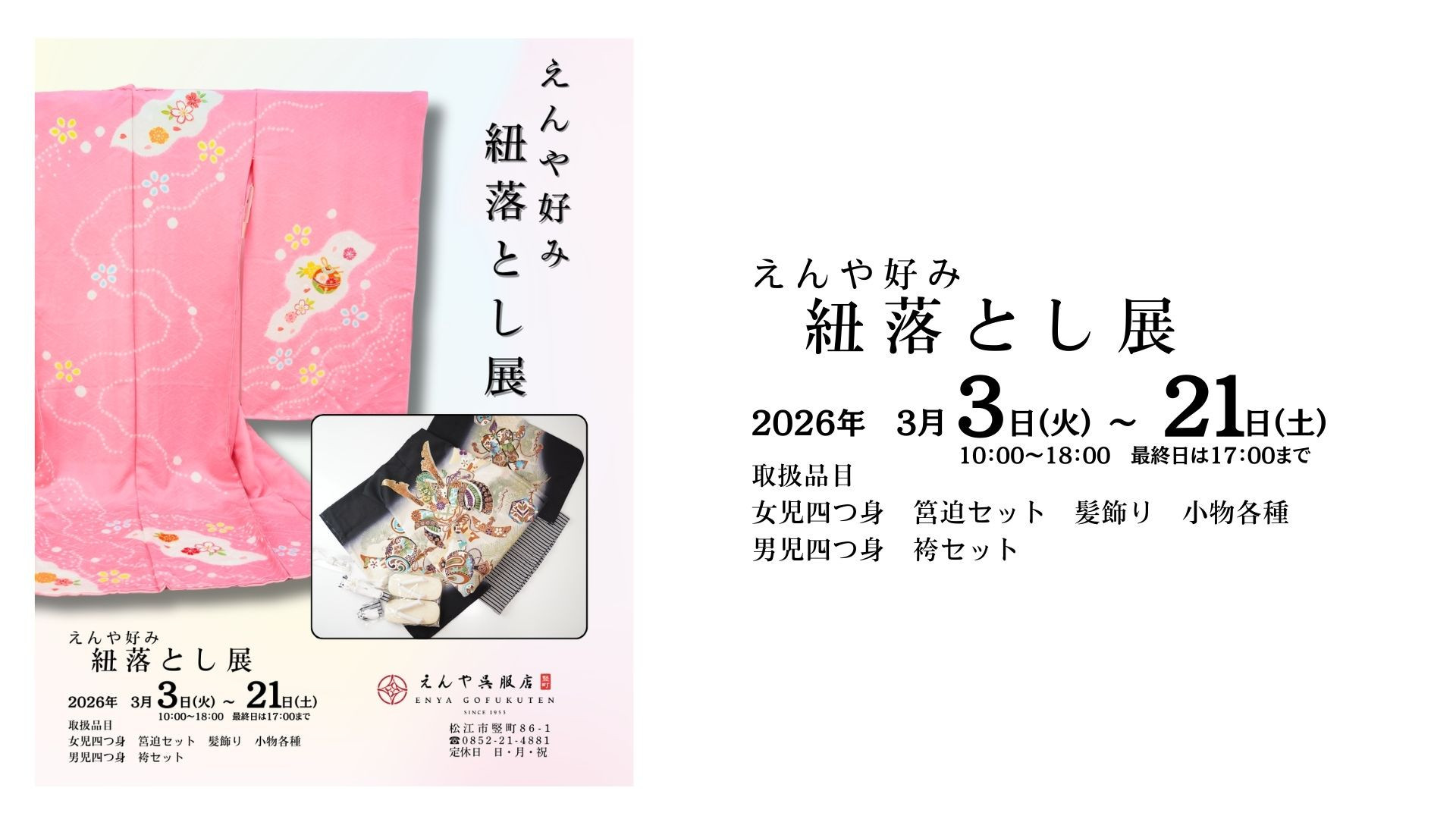きものは面白くて楽しい世界です。そんな着物の楽しさを伝えられる呉服屋を目指しています。毎日着物を着ている私達だから出来るご提案もあると思います松江の楽しい着物ライフをお手伝いしますどうぞお気軽にお越しください♪